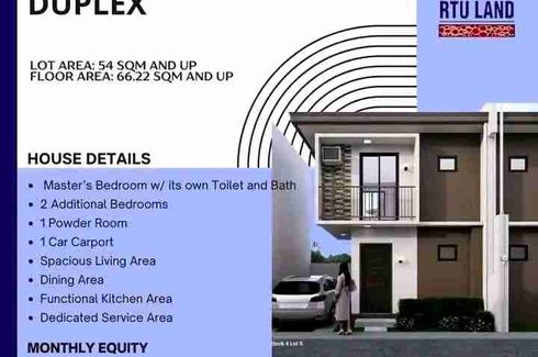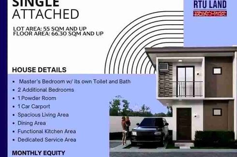As low as 20,073/MONTH(MONTHLY DOWN PAYMENT) HOUSE DETAILS3 Bedrooms2 CRLiving, Dining, Kitchen1 CarportTerraceFloor Area: 74 sqmLot Area: 44 sqm PAYMENT TERMSTotal Selling Price: Php2,250,000.00Reservation Fee: 15,000 pesos(Deductible to the Equity)Equity: (Php450,000) of the TSP payable up to 24-months :As low as 20,073.04/monthBalance: (Php1,800,000.00) of the TSP loanable thru Bank FinancingBank...