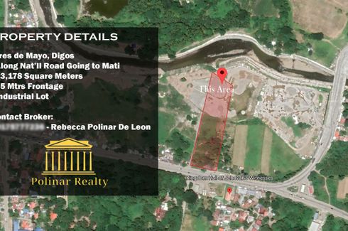 2.3 HAS Industrial Lot is For Sale at Digos (along Nat'll Road going Mati) Property Details: Lot Area: 12,178 Square Meters Frontage: 85 Meters Location: Tres De Mayo, Digos, Davao del Sur Note: - This property is near the Kingdom Hall of Jehovah's Witnesses, Elementary School, and Cooperative Establishment.