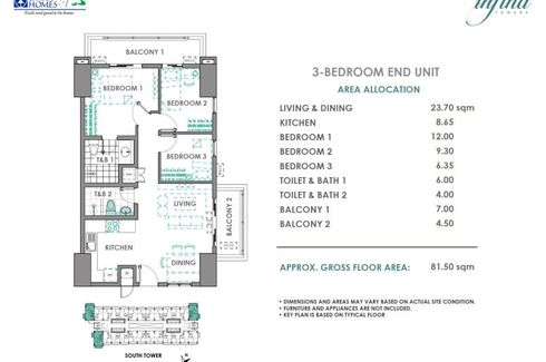 ‹ › 1/17 3 Bedroom Condo for sale in INFINA TOWERS, Marilag, Metro Manila near LRT-2 Anonas Quezon City, Metro Manila ₱ 5,500,000 (₱ 61,798 / m2) 3 2 89 m2 Condo Swimming pool Air conditioning Gym Internet Security Car park Garden Children's area +1 INFINA TOWERS High Rise CondoAurora Blvd. Quezon City near Katipunan Ave.Pre Selling CondoBEST FOR YOUR INVESTMENT!Up to 15% discount for Spot Cash BuyerBuildings Turn-Over Date:North Tower: September 2021 (DP payable in 41 months)South Tower: Sept. 2022 (DP payable in 53 months)Payment Terms;30% Downpayment payable up to turn-over date, 70% bal. thru Bank Financing2 Highrise Condominium1BR 27.50 sqm.... Annaliza Reyes Verified seller Call