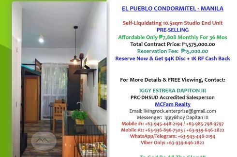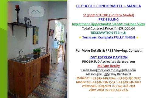 COVENT GARDEN RESIDENCESLocation in along LRT2 Santol Extension, Magsaysay Boulevard, Santa Mesa, Manila.PRE-SELLING AND READY FOR OCCUPANCY!PROMO!-RENT TO OWN-UP TO 35OK DISCOUNTS-5% OUTRIGHT PAYMENT FOR MOVE-INUNIT DETAILS:EXECUTIVE STUDIO 23.42 SQM-₱12, 579 MONTHLY-₱3, 458, 781 TCP1 BEDROOM 28.55 SQM-₱25,000 MONTHLY- ₱223,730 OUTRIGHT PAYMENT-₱4, 205, 452.50 TCP2 BEDROOM 48.2 SQM-₱25,...