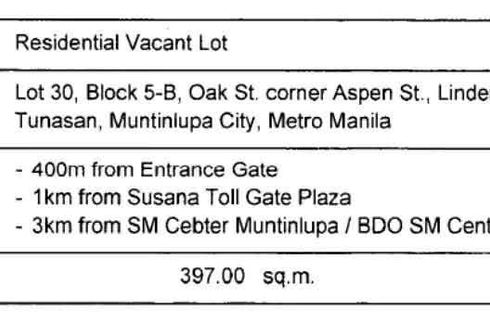 Land for sale in Tunasan, Metro Manila
