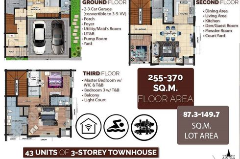 ‹ › 1/4 3 Bedroom Townhouse for sale in Bahay Toro, Metro Manila Quezon City, Metro Manila ₱ 22,100,000 (₱ 86,667 / m2) 3 3 255 m2 Townhouse Car park Project - Edsa Congressional TownhouseCompound type houses made of Grade 60 rebards, full elegant light, individual septic tank, cistern, main solid steel high-fence gate and electric fence, Guard House with CR and CCTV Cameras on common areas.Unit detailsGround floor 2-3 car garage (convertible to 3-5-W) Porch Foyer Guest room Utility/Maids Room UT&B Common t&b Pump room YardSecond floor Living area... Renato Samaniego Verified seller Call