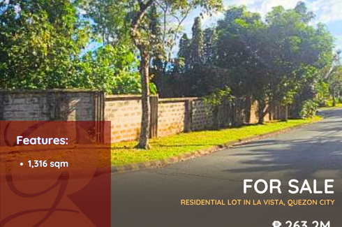 ‹ › 1/1 Land for sale in Pansol, Metro Manila Quezon City, Metro Manila ₱ 263,200,000 1,316 m2 FOR SALE: Residential Vacant Lot in La Vista Subd., Brgy. Pansol, Quezon CityLot Area: 1,316 sqmPrice: P263,200,000 (P200k/sqm) grossID: NCB4474Under PRC12640 Grandeur Realty Verified seller Call