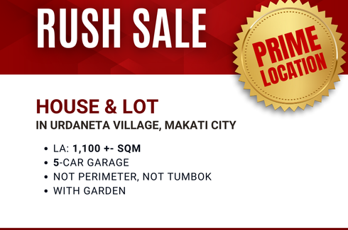Featured ‹ › 1/1 3 Bedroom House for sale in Urdaneta, Metro Manila near MRT-3 Buendia Makati, Metro Manila ₱ 600,000,000 (₱ 104,913 / m2) 3 5 5,719 m2 House Swimming pool Car park Garden RUSH SALE: House & Lot in Urdaneta Village, Makati CityPRIME LOCATION!Lot Area:1,100 +- sqmWell-maintained house5-car garageNot perimeter, not tumbokWith gardenPrice: Reduced from ₱700M down to ₱600M gross non-negotiableID: JGZ4200Under PRC12640 Natalie Basmajian Verified seller Call