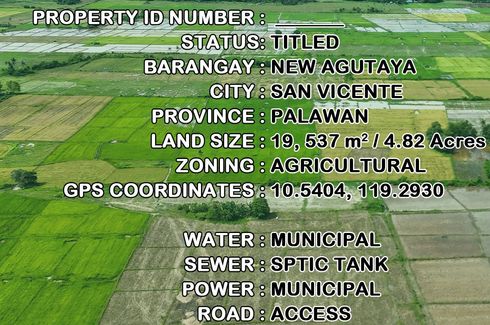 ‹ › 1/17 Land for sale in New Agutaya, Palawan San Vicente, Palawan ₱ 29,305,500 19,537 m2 This property is FSBO | All Reasonable Offers Will Be Considered | Financing Options Available | Open to Joint Venture Opportunities | Inquire Through This Advertiser!DETAILSSV103 | Titled | 19,537 m2 / 4.82 Acres | GPS - 10.5404, 119.2930 | New Agutaya, San Vicente, Palawan | ₱1,500/m2 / ₱29,305,500 / $498,231 RESERVATIONA ₱10,000 non-refundable reservation fee secures this property. The reservation... E-Estate Realty Services Philippines Inc Verified seller Call
