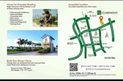 ‹ › 1/10 Land for sale in Mawaque, Pampanga Mabalacat, Pampanga ₱ 2,442,100 132 m2 Swimming pool Air conditioning Security Car park Garden Children's area +2 Lot for sale in Claremont Phase 5 Filinvest in Mabalacat!Create bonding moments with your family at the spacious Claremont community.This highly accessible subdivision offers comfort that you can actually afford.Contact REX at 0917-830----- or CHA at 0908-494----- for availability, price list, and schedule of a site tripping.Office: My Home Real Estate, Metro Supermarket, Marquee Mall, Angeles City My Home Philippines Call