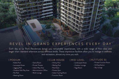 New ‹ › 1/21 1 Bedroom Condo for sale in Manggahan, Metro Manila Pasig, Metro Manila ₱ 15,579,396 1 1 Condo Swimming pool Air conditioning Gym Internet Security Car park Garden Balcony Wi-Fi +28 LE PONT RESIDENCESBe the first to own a unit in the newest luxury High-rise Condominium in Bridgetowne, Pasig. It is Located in the 31-hectare master-planned destination estate. Le Pont Residences promises to “bridge you to your best life” by connecting the two megacities of Pasig and Quezon City. The name of the property, Le Pont, which translates to “The Bridge”, is fitting as it is designed... Call