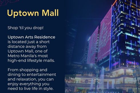 Discover Your Dream Condo with Our Early Move-In Promo at Uptown Arts Residence!Required Downpayment to Move In: P4,961,069.20Monthly Amortization for 36 months: P73,407.44With Lumpsum on the 10th, 20th, 30th month of: P4,368,828.88Remaining balance on the 25th month: P31,704,869.36 (With option to pay in Cash, Bank Finance or In house financing)Are you tired of renting and dreaming of owning your...