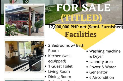 HOUSE FOR SALE! (CLEAN TITLED)SELLING PRICE:OPTION 1: P17,000,000 NET - (FULLY FURNISHED)Land size: 500 square metersFloor size: HOUSE: 115.7SQM, STUDIO: 28.69 SQM Places nearby: Fix Rite/Alturas Supermarket 100 meter. walking distance, South farm 2 min drive, Elem. school 2 min drive, Bohol Show Ocean Fantasy 3 min. drive, Panglao International Airport 4 min drive, famous Alona beach 5 min drive,...