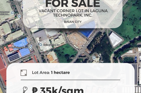 ‹ › 1/1 Land for sale in Biñan, Laguna Biñan, Laguna ₱ 352,975,000 10,085 m2 'FOR SALE Vacant Lot located at Laguna Technopark, Inc. Biñan, LagunaVacant corner lot Lot Area: 10,085 sqm / 1.08 hasCorner lotin front of the admin office Asking price: 35k per sqm or 352,975,000NCB2200 Call