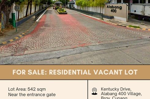 ‹ › 1/1 Land for sale in Cupang, Metro Manila Muntinlupa, Metro Manila ₱ 35,230,000 542 m2 FOR SALE Residential Vacant Lot located at Kentucky Drive, Alabang 400 Village, Brgy. Cupang, Muntinlupa CityLot Area: 542 sqmFlat lot along the main road.Near the entrance gate.Backing perimeterPrice: P35,230,000 (P65k/sqm)JGZ369 Call