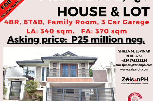 ‹ › 1/13 4 Bedroom House for sale in Bagong Silangan, Metro Manila Quezon City, Metro Manila ₱ 25,000,000 (₱ 67,568 / m2) 4 6 370 m2 House Asking Price down to P25M Modern Asian Design4 Bedroom6 T&B3 Car GarageBig LanaiLot Area: 340 sqmFloot Area: 370 sqm Call