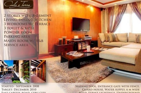 Cielo e Terra is a townhouse project developed by Cls properties, Cielo e Terra at Capitol Site, Cebu City has the following facilities: Air conditioning, Security, Car park, Children's area and Grill.