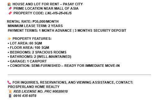 townhouses for sale in Pasay should you like to compare availability.