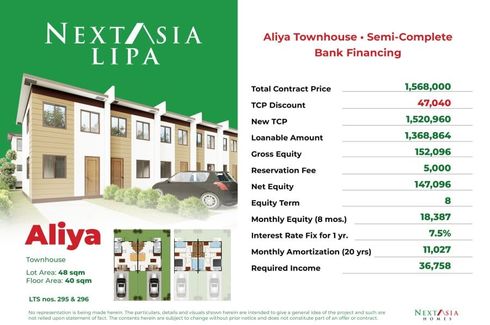 Lumina Homes' Angeli Townhouse Model is a 42 square meter home on a regular 36 square meter lot. Its features include a living area, dining & kitchen, 3 bedroom provision, 1 toilet & bath, 1 carport provision, and service area.About 45 minutes from Alabang, Sto. Tomas, Batangas can be easily reached via STAR Tollway and SLEX. Cushioned between Sto. Tomas and Tanauan is Lumina’s flagship project,...