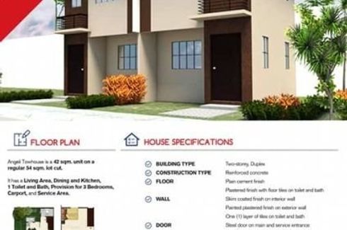 ‹ › 1/8 2 Bedroom Townhouse for sale in Lumina Pandi, Pulong Yantok, Bulacan Angat, Bulacan ₱ 1,050,000 (₱ 30,000 / m2) 2 1 35 m2 Townhouse Air conditioning Internet Security Car park Garden Children's area Panoramic view Grill +1 AFFORDABLE ELEGANT 2 BEDROOM ANGELIQUE 2-STOREY TOWNHOMES OFFERED BY LUMINA HOMES IN PANDI, BULACAN>> FEATURES:~ Lot Area: 36sqm~ Floor Area: 35sqm~ Provision for 2 Bedroom~ Provision for Carport and Service Area~ 1 Toilet and Bath~ Living and Dining Area~ Kitchen Area>> AMENITIES:~ Guardhouse ~ Mini Garden and Playground ~ Covered Basketball Court~ Jogging Path~ Space for Future Commercial Areas>>... Michael Canino Call