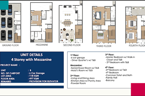 ‹ › 1/6 4 Bedroom Townhouse for sale in Horseshoe, Metro Manila near LRT-2 Betty Go-Belmonte Quezon City, Metro Manila ₱ 72,000,000 (₱ 127,434 / m2) 4 6 565 m2 Townhouse Swimming pool Internet Security Car park Garden Balcony Children's area Electricity Elevator +6 For Sale: 6 Units 5 Level-Townhouse 500-570 sqm Floor Area; Horseshoe Drive, Quezon City (3 Parking slots, 4 Bedrooms, 6 Toilet & Baths, Laundry Yard - Corner Units)TURN-OVER DATE: June 2024Townhouse Unit Details:Basement Floor: Entertainment Room /Bedroom-4 w/ T&B, Utility / Maid's Room w/T&B, Pump Room / Storage, Laundry Yard & Elevator Hall First Floor: 3-Car Garage w/ High Ceiling (Convertible... Bette Lim Verified seller Call