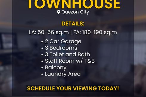 New ‹ › 1/9 3 Bedroom Townhouse for sale in Socorro, Metro Manila near LRT-2 Araneta Center-Cubao Quezon City, Metro Manila ₱ 20,899,000 (₱ 116,106 / m2) 3 3 180 m2 Townhouse Modern 3-Storey Townhouse for Sale in Cubao, Quezon CityProperty Code: MJ-CUB502📍 Cubao, Quezon CityNear Col. Bonny Serrano Ave.Property Details:- 3-Storey Townhouse- Inside gated compound- 3 Bedrooms- 3 Toilet & Bath- 2-Car Garage- Balcony- Staff / Maid’s RoomLot Area: 50 sqmFloor Area: 180 sqmPrice: PHP 20,899,000.00 (Gross)Features & Inclusions:✔ Guard House & Gated Community✔ Electric... Jeffrey Lock Verified seller Call